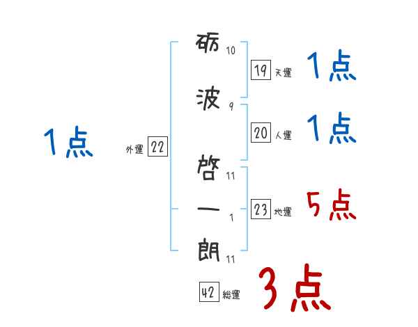 地運![]() | 砺波啓一朗さんの地運は23画の5つ星!想像力に優れ活力がある。一代で成功し名誉を手に入れる。 個性を表す基礎的な運勢です。性格形成や対人関係、行動力など家庭環境に影響されます。主に誕生してから20歳くらいまでの若年期の運勢を表します。 |