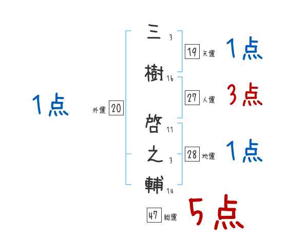 天運![]() | 三樹啓之輔さんの天運は19画の1つ星!優れた才能を持ちますが、協調性が足りないことも。周りの人と協力する事を意識しましょう。 家系が持つ宿命的な運勢を表します。祖先から受け継いだ苗字ですので自分の力が及びません。家柄を象徴します。 |