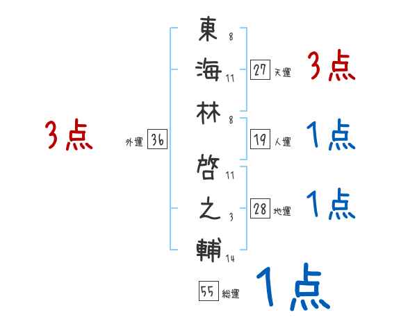 外運![]() | 東海林啓之輔さんの外運は36画の3つ星!先見性が豊かです。多少神経質で苦労することも。 生活面を象徴する運勢です。外部から受ける影響力を表し、結婚運、家庭運や職場、環境への順応性を表します。 |