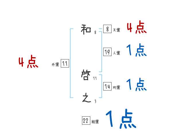 和啓之さんの画数の鑑定結果