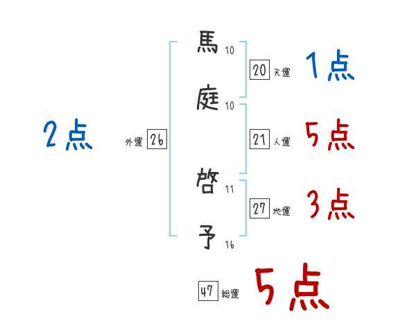 馬庭啓予さんの画数の鑑定結果