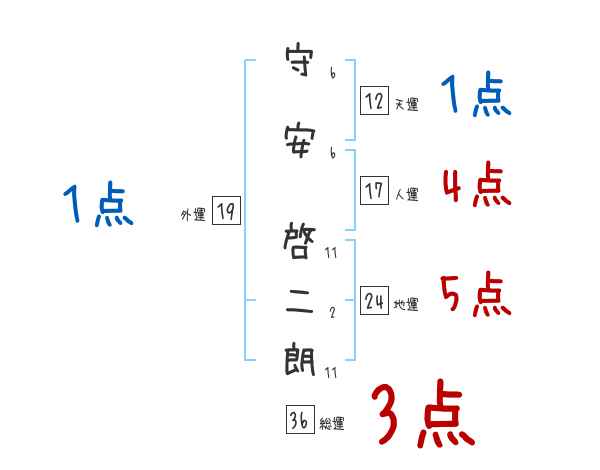 総運![]() | 守安啓二朗さんの総運は36画の3つ星!先見性が豊かです。多少神経質で苦労することも。 あなたの人生を表す1番重要な運勢です。生涯を通じて影響する総合運となり、主に50歳以降の晩年期に影響を及ぼします。 |