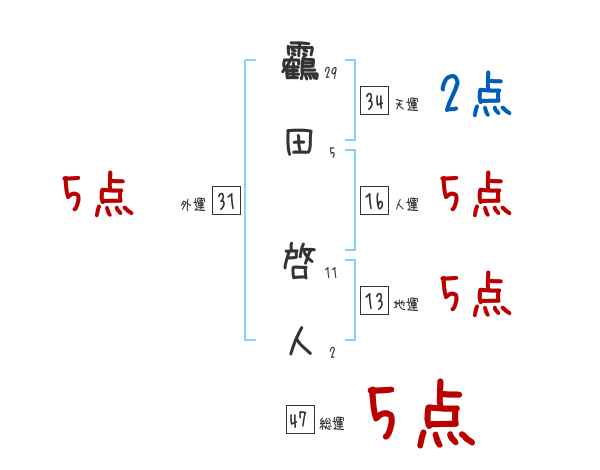 靏田啓人さんの画数の鑑定結果
