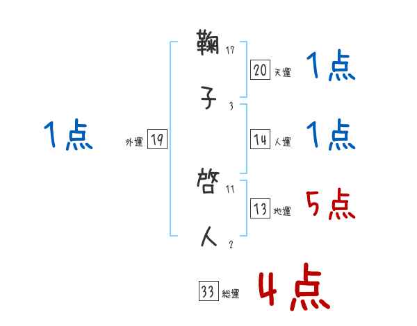 鞠子啓人さんの画数の鑑定結果