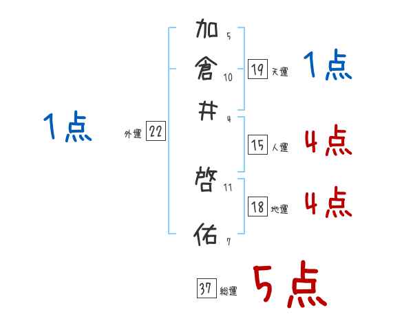 加倉井啓佑さんの画数の鑑定結果