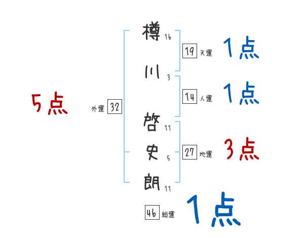 樽川啓史朗さんの画数の鑑定結果