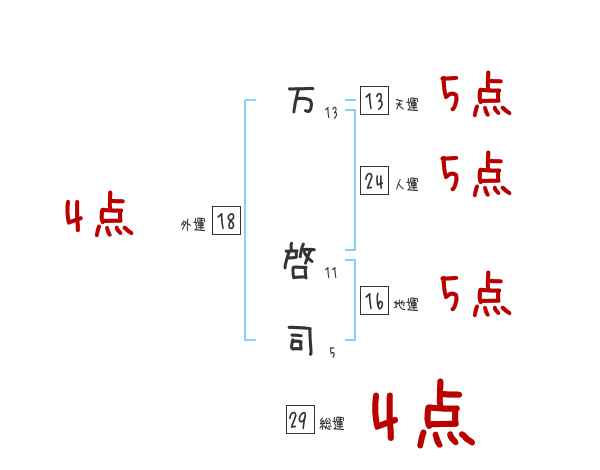 万啓司さんの画数の鑑定結果