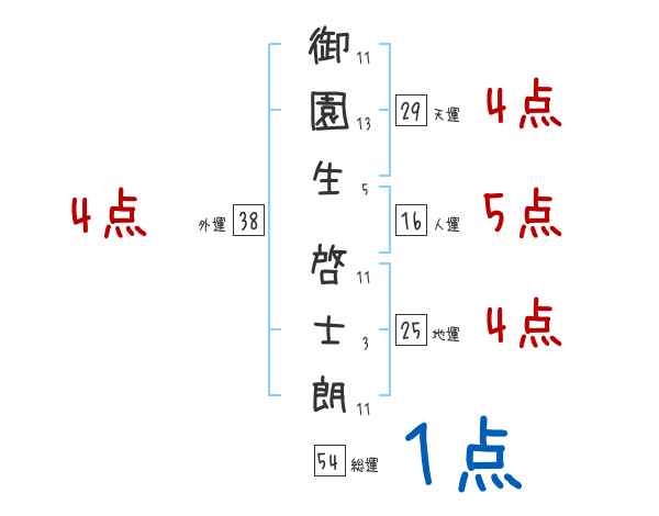 御園生啓士朗さんの画数の鑑定結果