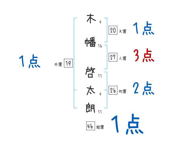 人運![]() | 木幡啓太朗さんの人運は27画の3つ星!頭脳明晰だが強情で摩擦が多い傾向。孤立に注意。 性格や才能などを表す2番目に重要な運勢です。人間関係や協調性、社会的な成功に影響します。主に20歳から50歳ぐらいまでの中年期の運勢を表します。 |