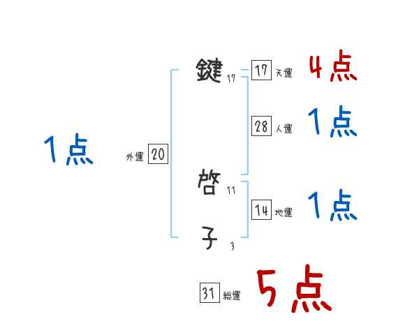 鍵啓子さんの画数の鑑定結果