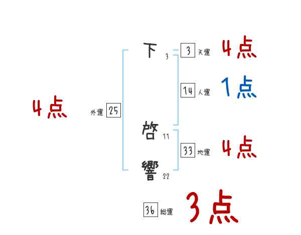 下啓響さんの画数の鑑定結果