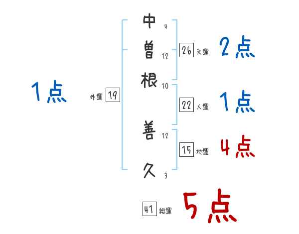 中曽根善久さんの画数の鑑定結果