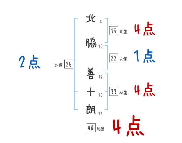 北脇善十朗さんの画数の鑑定結果