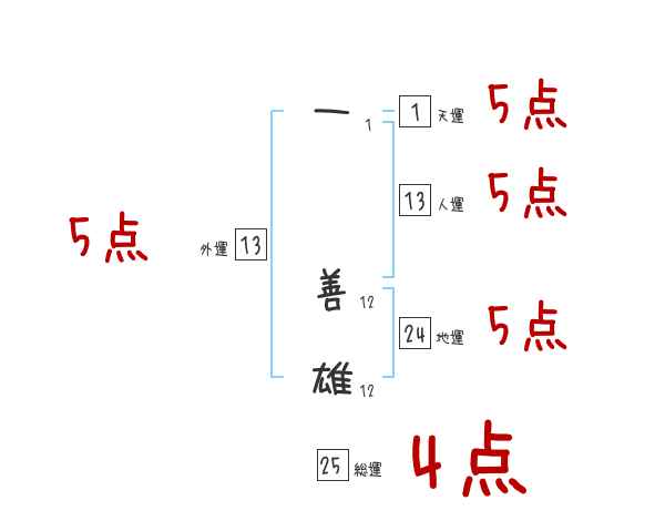 一善雄さんの画数の鑑定結果