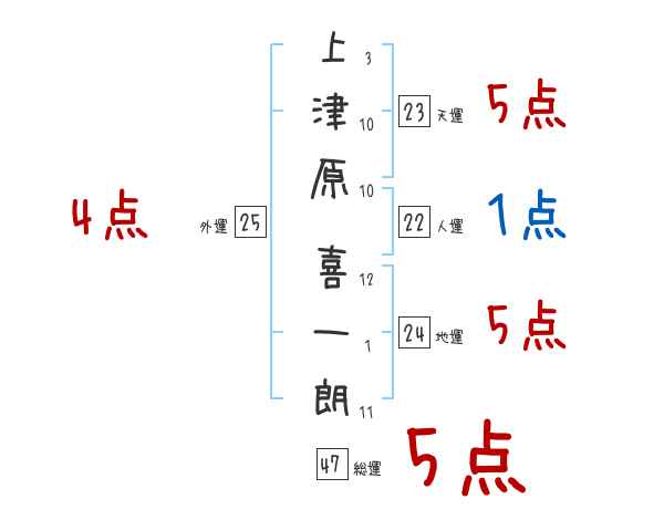 上津原喜一朗さんの画数の鑑定結果