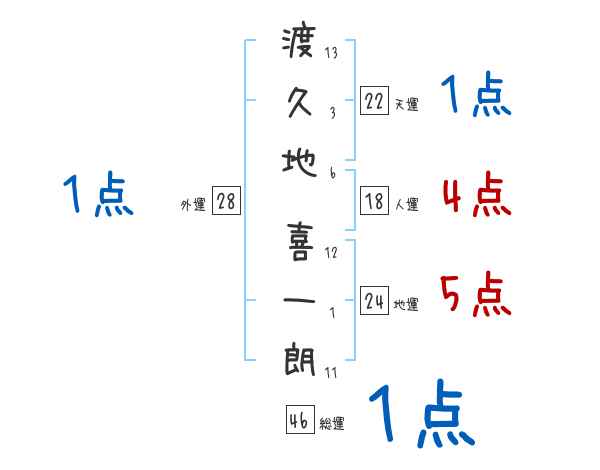 渡久地喜一朗さんの画数の鑑定結果