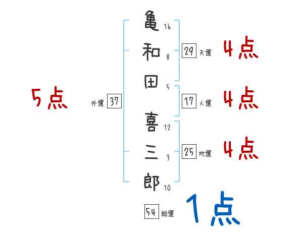 外運![]() | 亀和田喜三郎さんの外運は37画の5つ星!努力家で順応性に優れる。現実的な考え方ができ忠実に物事をこなす。 生活面を象徴する運勢です。外部から受ける影響力を表し、結婚運、家庭運や職場、環境への順応性を表します。 |