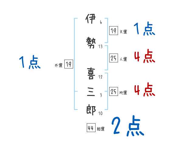 伊勢喜三郎さんの画数の鑑定結果