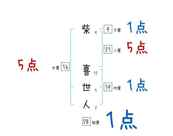 天運![]() | 柴喜世人さんの天運は9画の1つ星!消極的で才能を発揮することが苦手なことも。周りの意見に耳を傾けましょう。 家系が持つ宿命的な運勢を表します。祖先から受け継いだ苗字ですので自分の力が及びません。家柄を象徴します。 |
