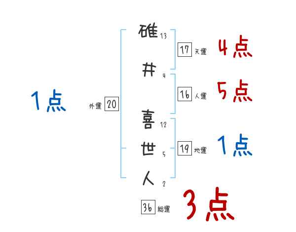 碓井喜世人さんの画数の鑑定結果