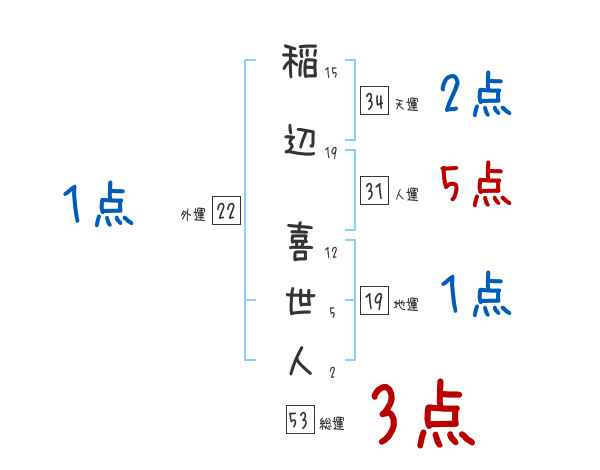 稲辺喜世人さんの画数の鑑定結果