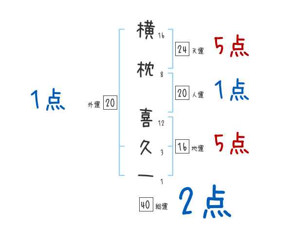地運![]() | 横枕喜久一さんの地運は16画の5つ星!人望が厚く大きく発展する。逆転成功が見える。 個性を表す基礎的な運勢です。性格形成や対人関係、行動力など家庭環境に影響されます。主に誕生してから20歳くらいまでの若年期の運勢を表します。 |