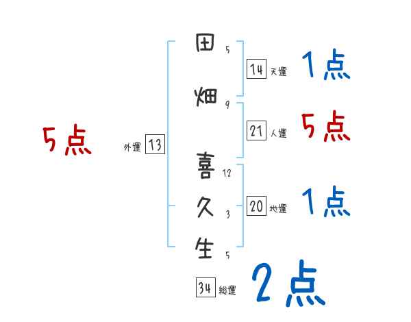 田畑喜久生さんの画数の鑑定結果