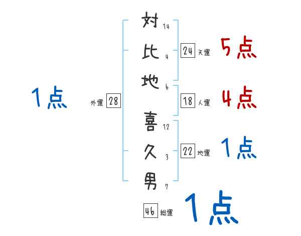 対比地喜久男さんの画数の鑑定結果