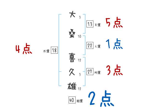 外運![]() | 大桑喜久雄さんの外運は18画の4つ星!情熱的で剛気。忍耐力があり信頼される。 生活面を象徴する運勢です。外部から受ける影響力を表し、結婚運、家庭運や職場、環境への順応性を表します。 |