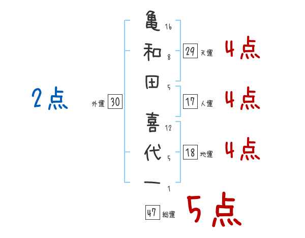 亀和田喜代一さんの画数の鑑定結果