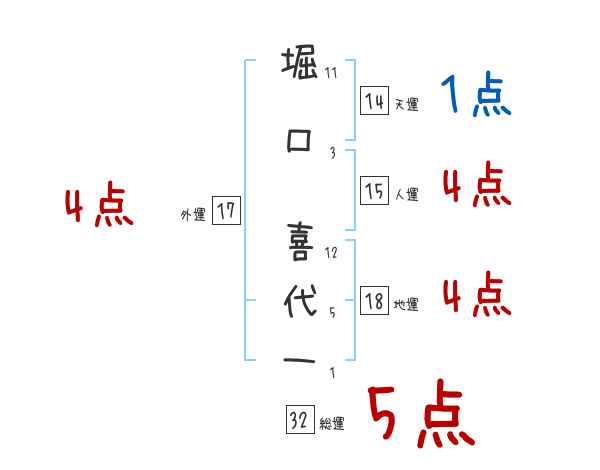 総運![]() | 堀口喜代一さんの総運は32画の5つ星!柔軟性があり成功する。チャンスが多く金運が良い。 あなたの人生を表す1番重要な運勢です。生涯を通じて影響する総合運となり、主に50歳以降の晩年期に影響を及ぼします。 |