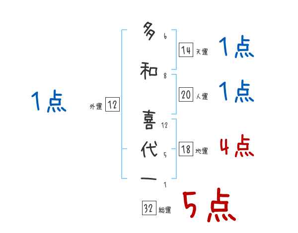 総運![]() | 多和喜代一さんの総運は32画の5つ星!柔軟性があり成功する。チャンスが多く金運が良い。 あなたの人生を表す1番重要な運勢です。生涯を通じて影響する総合運となり、主に50歳以降の晩年期に影響を及ぼします。 |