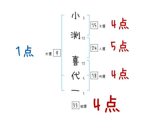 小渕喜代一さんの画数の鑑定結果