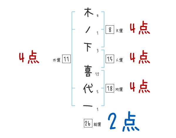 木ノ下喜代一さんの画数の鑑定結果