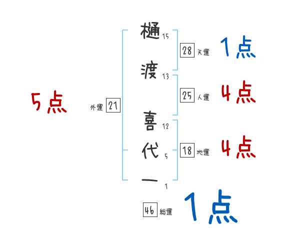 外運![]() | 樋渡喜代一さんの外運は21画の5つ星!統率力がある。独立し成功する。名誉を手に入れる。 生活面を象徴する運勢です。外部から受ける影響力を表し、結婚運、家庭運や職場、環境への順応性を表します。 |