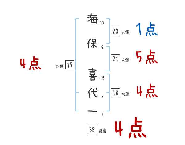 外運![]() | 海保喜代一さんの外運は17画の4つ星!積極的な行動力。地位を気づき財産を手に入れる。純粋な心と直感力。 生活面を象徴する運勢です。外部から受ける影響力を表し、結婚運、家庭運や職場、環境への順応性を表します。 |