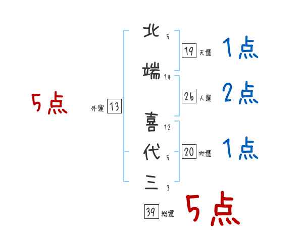 総運![]() | 北端喜代三さんの総運は39画の5つ星!社交性に優れ人望が厚い。人の上に立ち成功する。 あなたの人生を表す1番重要な運勢です。生涯を通じて影響する総合運となり、主に50歳以降の晩年期に影響を及ぼします。 |