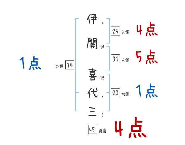 外運![]() | 伊関喜代三さんの外運は14画の1つ星!人に対して優しいがストレスを溜め込みがち。人間関係のトラブルを避けるよう気をつけましょう。 生活面を象徴する運勢です。外部から受ける影響力を表し、結婚運、家庭運や職場、環境への順応性を表します。 |