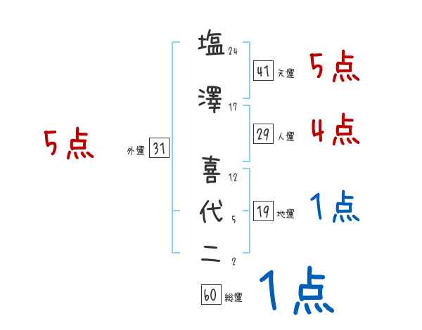 塩澤喜代二さんの画数の鑑定結果