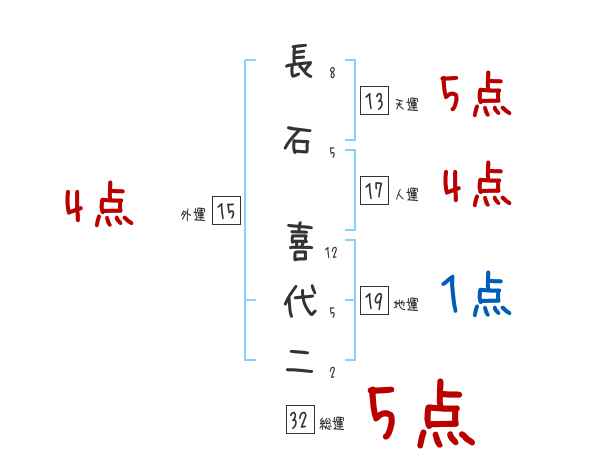 長石喜代二さんの画数の鑑定結果