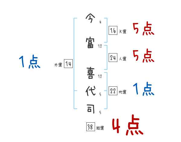 今富喜代司さんの画数の鑑定結果