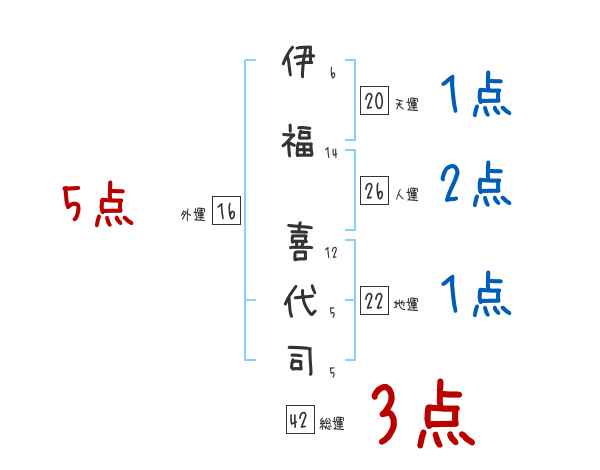 伊福喜代司さんの画数の鑑定結果