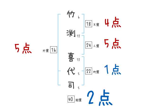 外運![]() | 竹渕喜代司さんの外運は16画の5つ星!人望が厚く大きく発展する。逆転成功が見える。 生活面を象徴する運勢です。外部から受ける影響力を表し、結婚運、家庭運や職場、環境への順応性を表します。 |