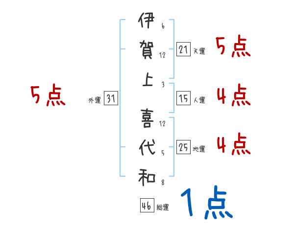 天運![]() | 伊賀上喜代和さんの天運は21画の5つ星!統率力がある。独立し成功する。名誉を手に入れる。 家系が持つ宿命的な運勢を表します。祖先から受け継いだ苗字ですので自分の力が及びません。家柄を象徴します。 |
