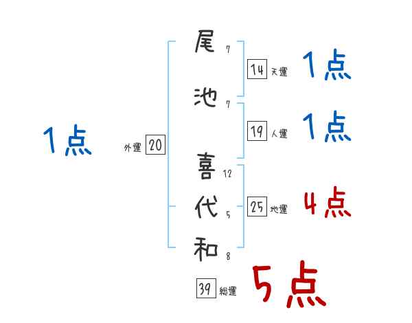 尾池喜代和さんの画数の鑑定結果