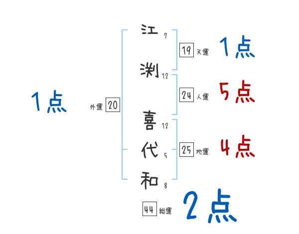 天運![]() | 江渕喜代和さんの天運は19画の1つ星!優れた才能を持ちますが、協調性が足りないことも。周りの人と協力する事を意識しましょう。 家系が持つ宿命的な運勢を表します。祖先から受け継いだ苗字ですので自分の力が及びません。家柄を象徴します。 |