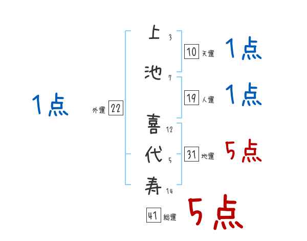 上池喜代寿さんの画数の鑑定結果
