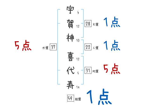 宇賀神喜代寿さんの画数の鑑定結果