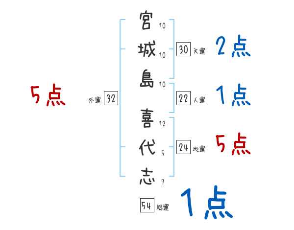 宮城島喜代志さんの画数の鑑定結果