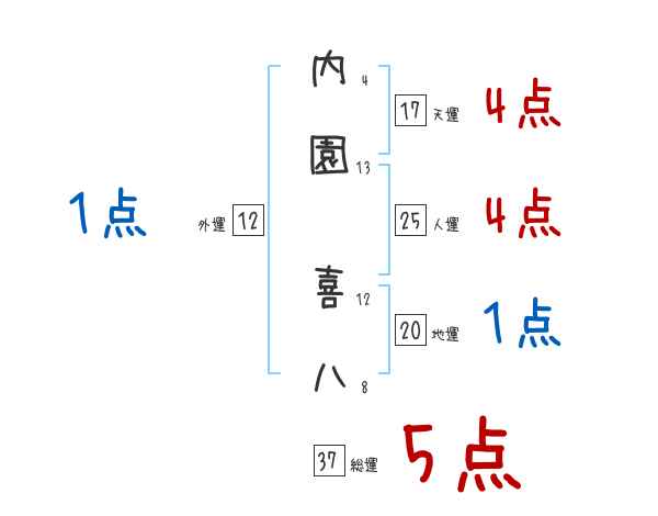 天運![]() | 内園喜八さんの天運は17画の4つ星!積極的な行動力。地位を気づき財産を手に入れる。純粋な心と直感力。 家系が持つ宿命的な運勢を表します。祖先から受け継いだ苗字ですので自分の力が及びません。家柄を象徴します。 |